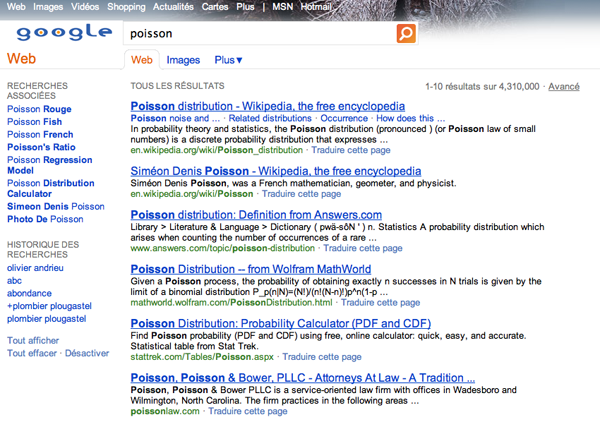 Page de résultats de Google ce matin pour la requête "poisson"...
