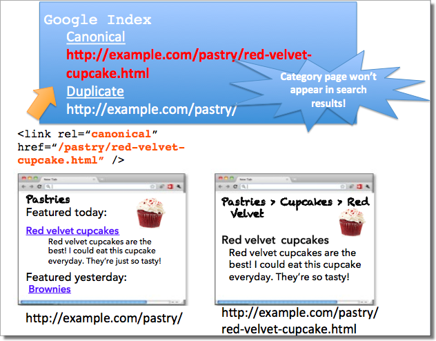 Les conseils donnés pour utiliser cette balise dans une page dupliquée d'une autre (appelée "canonique") sont :