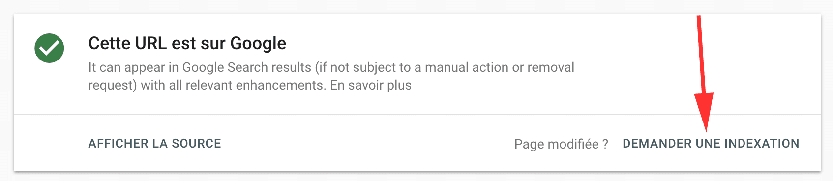 Le rapport sur les actions manuelles dans la nouvelle Search Console. Source : GoogleL'outil d'inspection d'URL, lancé fin juin, se voit également agrémenté d'une possibilité d'indexation, certainement pour remplacer l'ancien formulaire de soumission supprimé il y a quelques jours de cela :