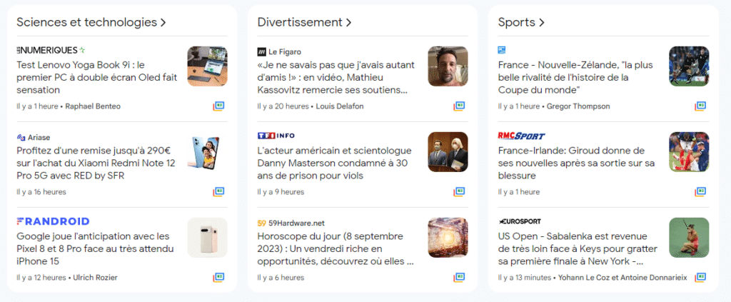 A noter : cet affichage semble uniquement disponible sur desktop, pour le moment. En tout cas, je ne l’ai pas constaté sur la version mobile de Google Actualités. Chaque chose en son temps…