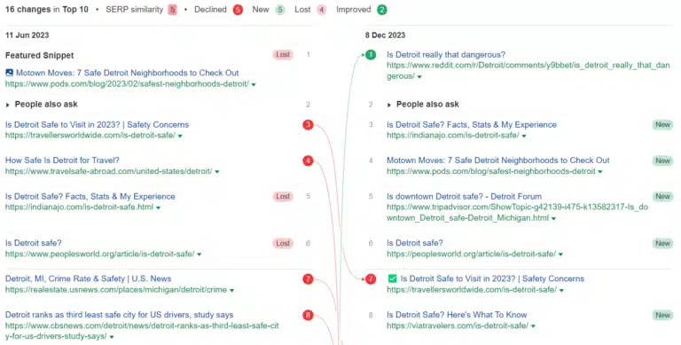 - Examinez la fréquence à laquelle Google change les résultats de vos mots-clés cibles, identifiez ceux qui ont une volatilité élevée et priorisez les mots-clés stables ;