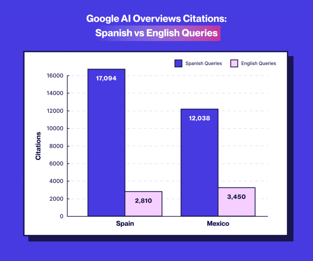 - Sans traduction, les sites sont quasi invisibles : jusqu’à 431 % de citations en moins dans Google AI Overviews pour les recherches dans une langue non proposée par le site.