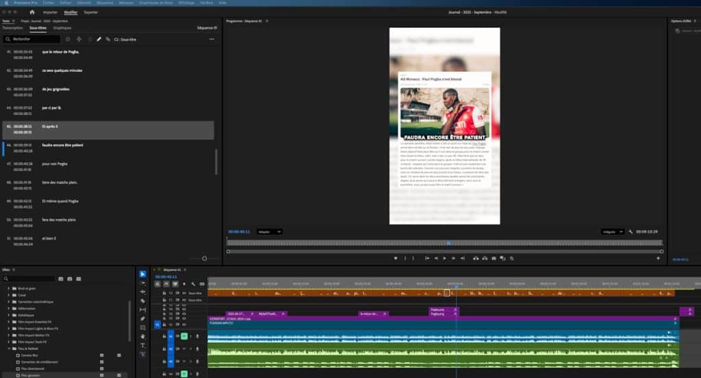 On utilisera ici les mêmes logiciels que ceux cités précédemment. CapCut offre l’avantage d’avoir pensé cet élément dès sa création, et on sent que le logiciel est conçu en ayant cette fonction de façon native. Premiere Pro propose lui aussi la possibilité de transcrire vos séquences audio et de générer des sous-titres de façon automatique. Dans les deux cas, quelques corrections seront à prévoir, mais aujourd’hui les logiciels sont très performants.