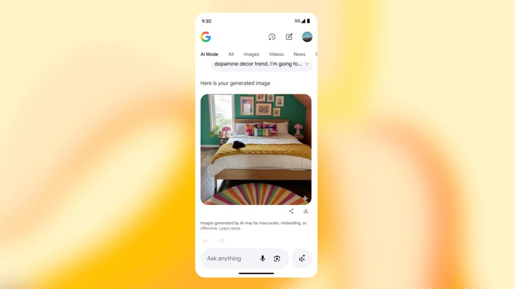 À noter : Nano Banana n’équipe pas seulement Lens, mais aussi AI Mode, le mode de recherche conversationnelle expérimentale de Google. Une interface qui permet de créer, modifier et discuter visuellement dans la même fenêtre.