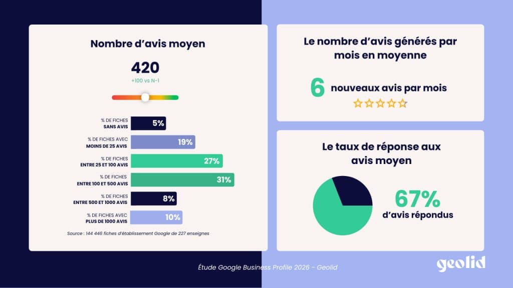 - Plus d'une fiche sur deux (51%) comptabilise encore moins de 100 avis, un seuil de confiance essentiel aux yeux des consommateurs.