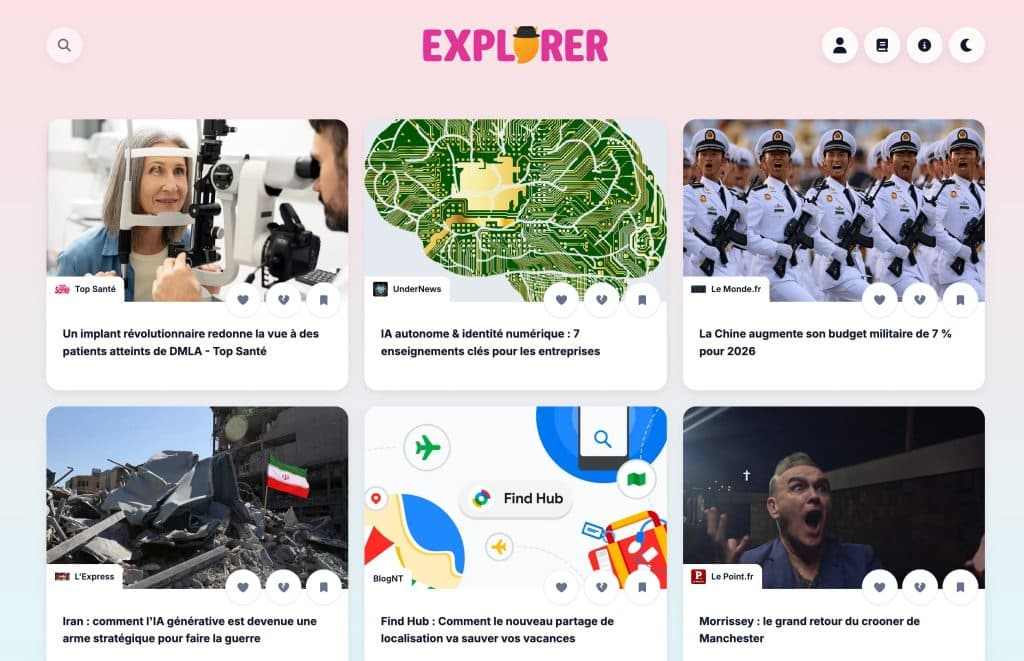 Ibou Explorer se rapproche donc de Google Discover dans son principe (un flux de contenus recommandés), mais avec deux différences importantes :