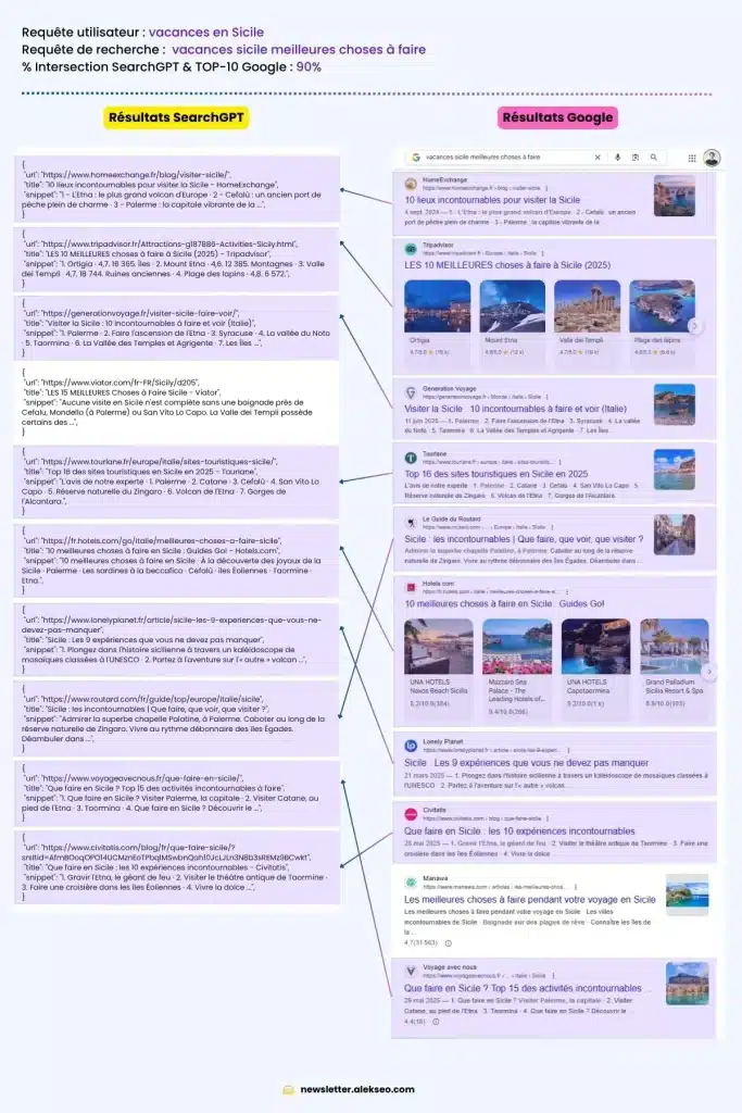 L'étude d'Alexis Rylko "SearchGPT abandonne Bing et passe chez Google" le démontre. En analysant les fichiers JSON des conversations ChatGPT, il établit que 90 % des URLs récupérées par SearchGPT correspondent aux premiers résultats de Google :