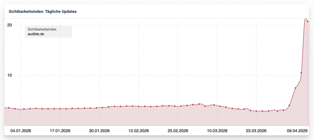 En Allemagne, le signal le plus fort vient d'un cluster inattendu : quatre aéroports officiels gagnent simultanément. Stuttgart (+22%), Cologne-Bonn (+18%), Hambourg (+17%) et Munich (+8%). Quand quatre domaines d'une même niche progressent en même temps et de façon parallèle, ce n'est pas une coïncidence. Google semble avoir réorganisé les résultats de recherche liés aux aéroports au profit des sites officiels, au détriment des comparateurs et agrégateurs tiers. Autres gagnants notables côté allemand : ratiopharm.de (+12%), commerzbank.de (+11%), les sites gouvernementaux hessen.de, arbeitsagentur.de, wwf.de. Et audible.de, avec +172%, qui constitue le plus grand gagnant de cette mise à jour en Allemagne, bien que son effet n'ait été perceptible qu'à partir du 3 avril, une semaine après le début du déploiement.