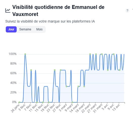 J’ai testé ma recette avec mon site perso edv.fr sur des prompts “Donne les 5 meilleurs consultants SEO” ou “Top 5 des consultant SEO” et les résultats sont sans appel (outil de tracking externe : météoria ici)